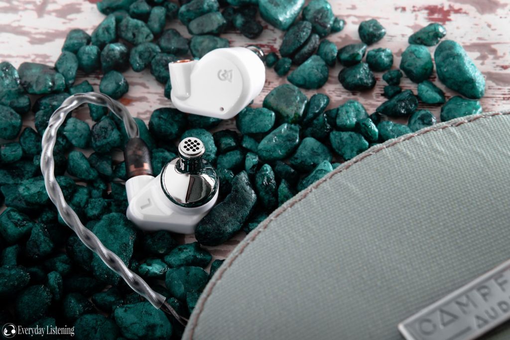 Campfire Audio’s unboxings are always a pleasure and their updated line-up employs a similar experience to other models released this year. Opening the rear lets the colourful shell slide away from an internal hard box. The box contains a new carrying case, switching out the cork construction for a delightful seafoam green canvas made from upcycled marine plastic. Alongside the silver metal zipper and Campfire Audio tag, it exudes a classic American aesthetic.