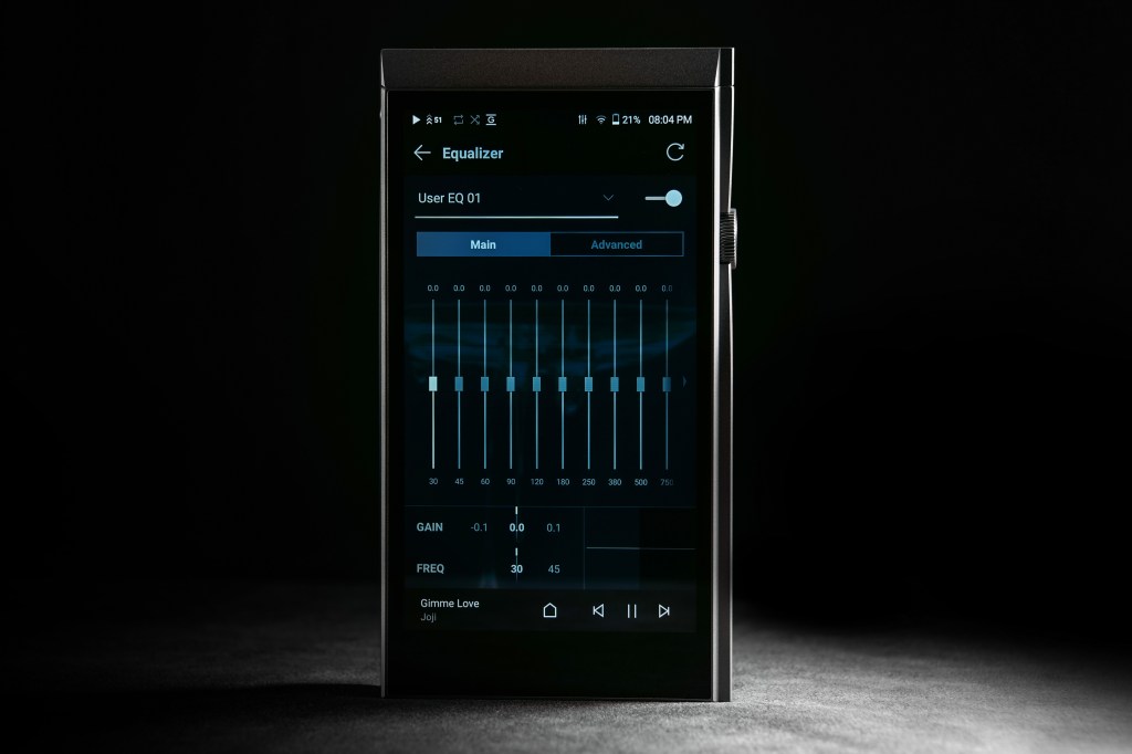 I felt it appropriate to delve more into car mode here given many use DAPs for car audio playback as wireless support here remains widely lacking. In car mode, you are no longer able to leave the now playing screen and controls are simplified to include a large fine scrub bar, skip track and playback modes. You can toggle landscape and horizontal orientations though it defaults to landscape. Playlists are available at the top right, but you cannot browse by album, song, etc. Car mode is easily exited via the button in the top left. The inbuilt equaliser is very capable and offers almost as much granularity as a parametric system. It has very fine frequency bands and gives you gain setting granularity to the 0.1dB, indicated also in the bottom left. This means you are able to very finely tune the sound output of this device and such flexibility is surely something I haven’t seen hugely adopted.