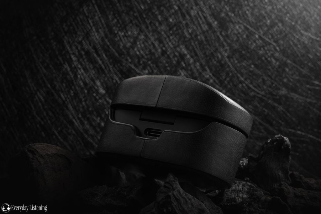 The Miter cases adopt a typical two-piece design that slides onto the top and bottom of the Sony charging case and are held in place with their snug fit. I experienced no issue with them falling off nor becoming loose after being repeatedly taken off and re-installed. There are two material choices at present, each offered in 3 colours. The black case here is an Italian faux leather that feels reminiscent of their DAP cases. This leather has a smooth grain and slightly padded feel, you can order in red or navy in addition to black. It is opulent yet offers great drop protection due to its thicker construction. The Miter logo debossed on the front adds some style to my eyes.