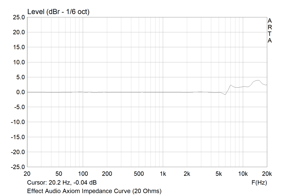 I was expecting the Axiom to have a considerably less linear impedance curve but, for the most part, it is quite consistent. Below 4kHz, the curve is dead even and this is likely due to the dynamic driver covering bass and mids, giving them a consistent character. Above, however, treble does become brighter as the output impedance rises. This provides a crisper, more sparkly sound for those wanting more energy. For my ears, I did prefer low OI sources as I find the Axiom bright enough out of the box. This may be an avenue for tuning with the silver modules that attenuates these frequency ranges.