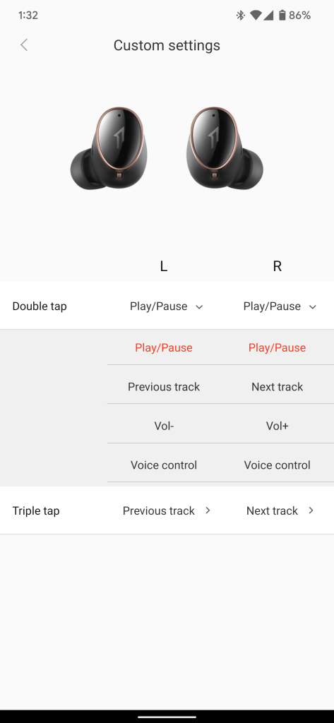 Perhaps owing to a new chipset, the EVO has hugely expanded functionality using the accompanying 1More app. To be aware that there are two apps, the older app offers a basic player UI and burn-in whilst the new 1More Music app provides further functions for the earphones. This includes toggling between 3 ANC modes, 2 aware modes and overall noise cancelling being on or off. You get OTA updates, a digital user manual and limited touch control customisation (2 presets only). There are two connectivity toggles, one for LDAC support and one for multi-point. It appears strange that these aren’t enabled from factory. However, as LDAC does prioritise quality, it can affect reliability which some users may not prefer. Thankfully, once turned on, the settings stick and you are able to uninstall the app without it affecting these features if you are opposed to bloatware.