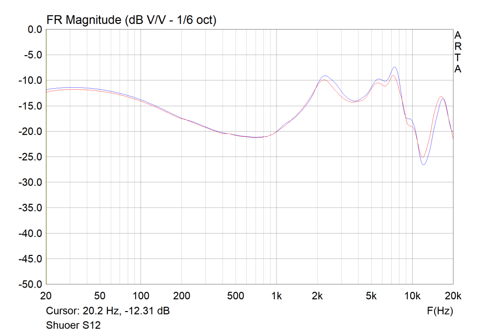 This is where things get very interesting for the S12 has a tuning that is not uncommon in the high-end IEM space where treble tends to become brighter to bedazzle the listener. Some entry and even mid-level IEMs attempt to imitate yet without the resolving power to back it up. These fall to the wayside as brittle, strident affairs. The S12, however, does not suffer from the same fallibilities. It isn’t a bright, glaring monitor but simply a bright leaning one, and it has more then enough resolving power to ensure its proudly showcased notes are fully fleshed out. Indeed, emphasis starts in the lower treble and continues into the mid-treble too. Yet this isn’t a strident, over-sharpened in-ear but a crisp, cleanly presented one with just a hint of splashiness. I will also note that I confirmed measurements using a sine sweep as occasionally these peaks are due to coupler resonance rather than occurring on the IEM itself.