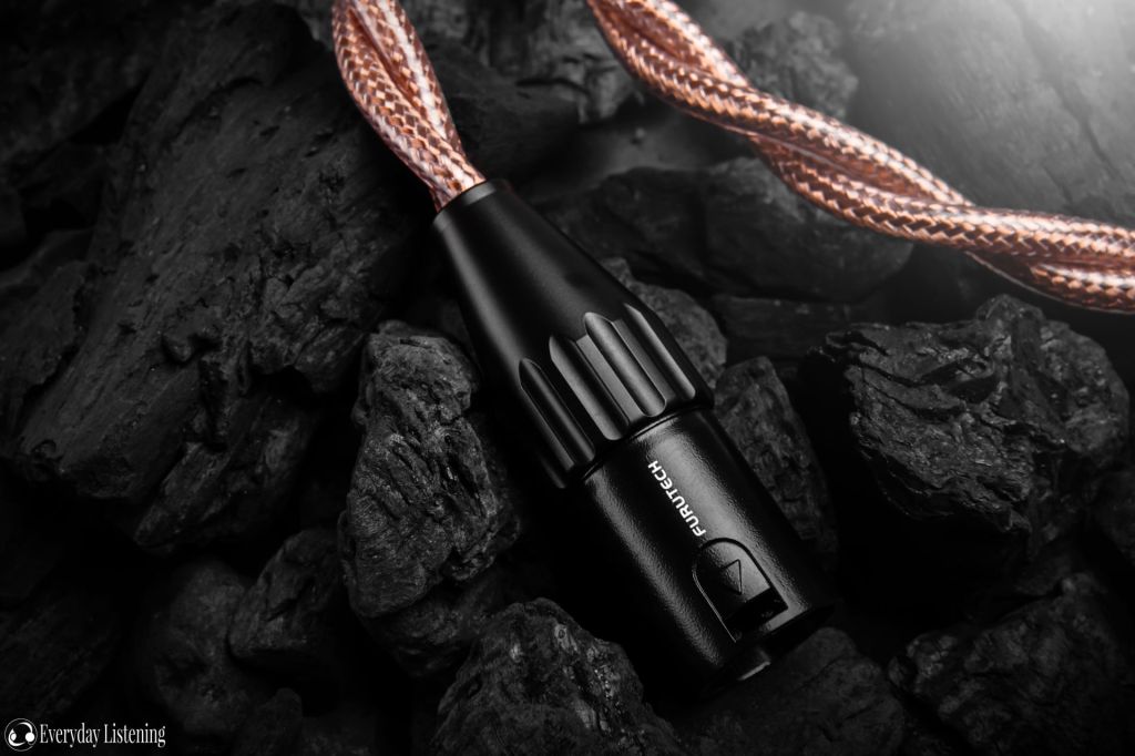 If you have any experience with Eletech, you know that the company makes quality products. The Inferno is no different, boasting an incredibly sturdy design with an attractive selection of connectors. Unlike their earphone cables, only the Y-split is a custom component due to the adoption of more generic headphone standards (though 1/4″ connectors match the y-split). The splitter is a sight to behold, however, as the company has given it awesome contrast between brushed gunmetal grey and obsidian black. My cable came terminated with a quality Furutech XLR connector and heat-shrunk mini-XLR plugs on the headphone end. The shrink has clear orientation markings and tasteful Eletech branding.