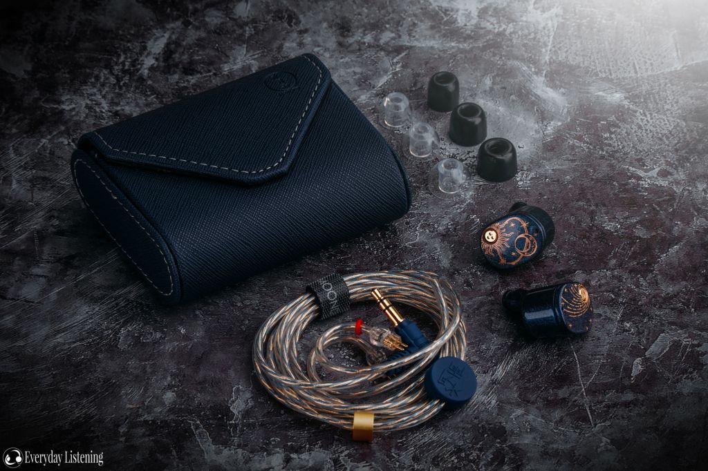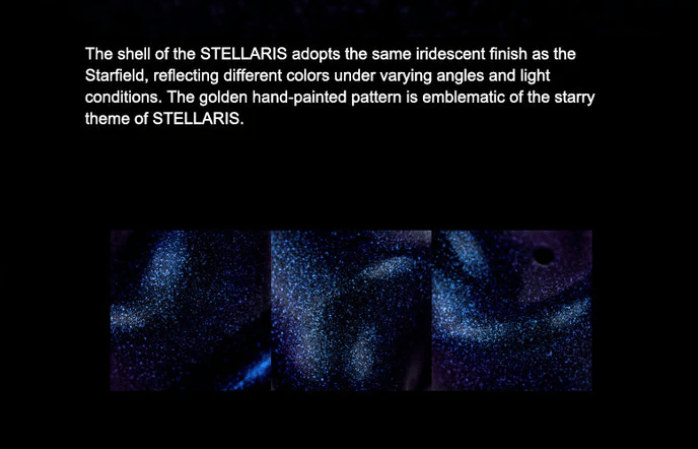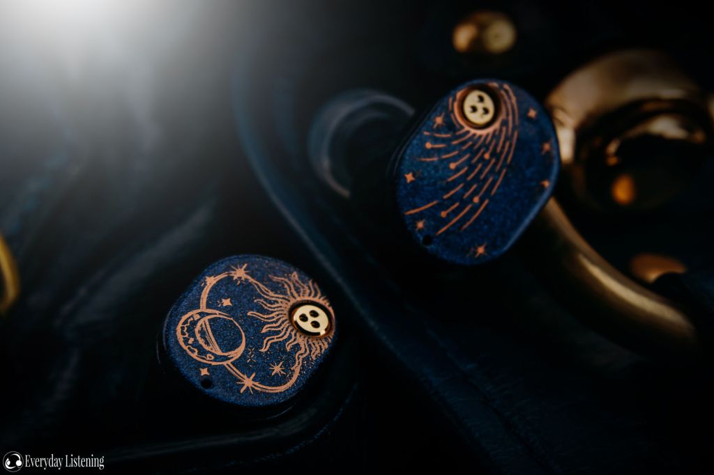 Like the Starfield, the Stellaris has a painted iridescent metal shell in signature blue with glitter speck and gold hand-painted pattern embroidery. Moondrop has designed the internals of the shell to offer phase coherence and optimize the frequency response of the driver to match their intended VDSF curve.