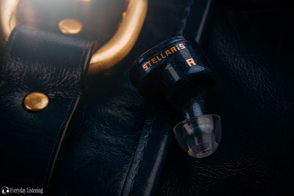 The Stellaris makes a good initial impression with well-weighted all-metal housings and a 2-piece shell design with tight tolerances devoid of rough edges or imperfections. What really sets the Stellaris apart, however, is the paint job. Had it not been specified in their marketing material I would never have guessed that the gold patterns were applied by hand given their immaculate outlines. The deep blue with glitter speck base coat serves as an appropriate and equally eye-catching canvas. Besides this, I appreciate the overall colour coordination at play. The faceplate vents are a matching gold and as aforementioned, so too are the conductors in the cables. This makes for an altogether handsome and unique offering, especially within its price class.