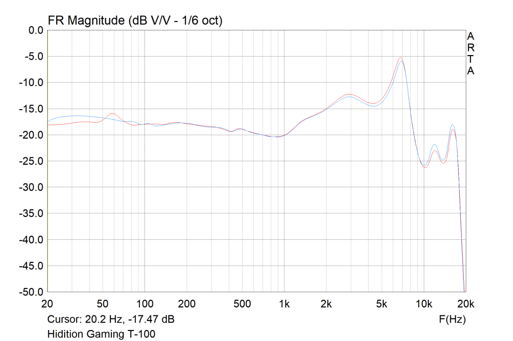 Due to its single-driver design, the T-100 offers a consistent sound profile from sources with a variety of output impedances. Listening from a source with a 10-ohm output impedance delivered an identical sound to one with a sub-1-ohm impedance. Unfortunately, my measurement rig was acting up during this review, so I was unable to get a consistent enough graph to compare.