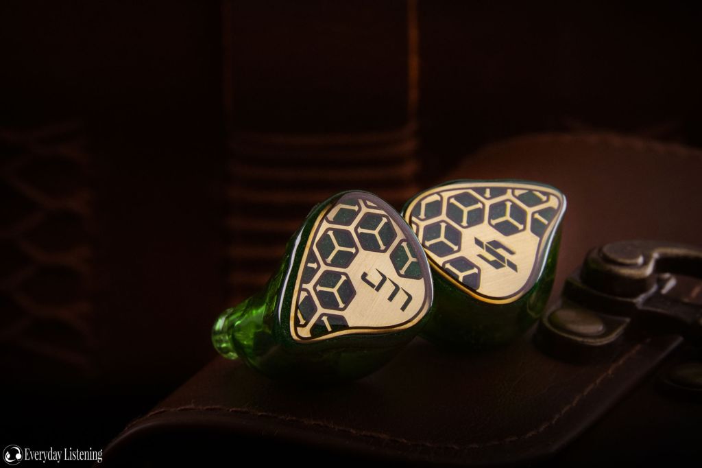 As opposed to its siblings, the Instinct has a medical-grade resin shell which Joseph says contributes to the sound tuning differences between the 3 flagships. True to its name it comes in a vivid emerald green adorned with precision milled bronze faceplates. The shells are covered in a flawless high polish finish that is super slick and easy to clean. Unlike many modern 3D printed shells, the Instinct is not resin-filled which perhaps provides greater air volume for the dual-woofer system to work with, working in tandem with a small vent located near the 2-pin connectors. The milled faceplates give the earphone heaps of depth and a premium aesthetic. There are no bubbles or imperfections miring this impression and the resin construction is overall solid yet lightweight if not as exotic as its metal-clad counterparts.