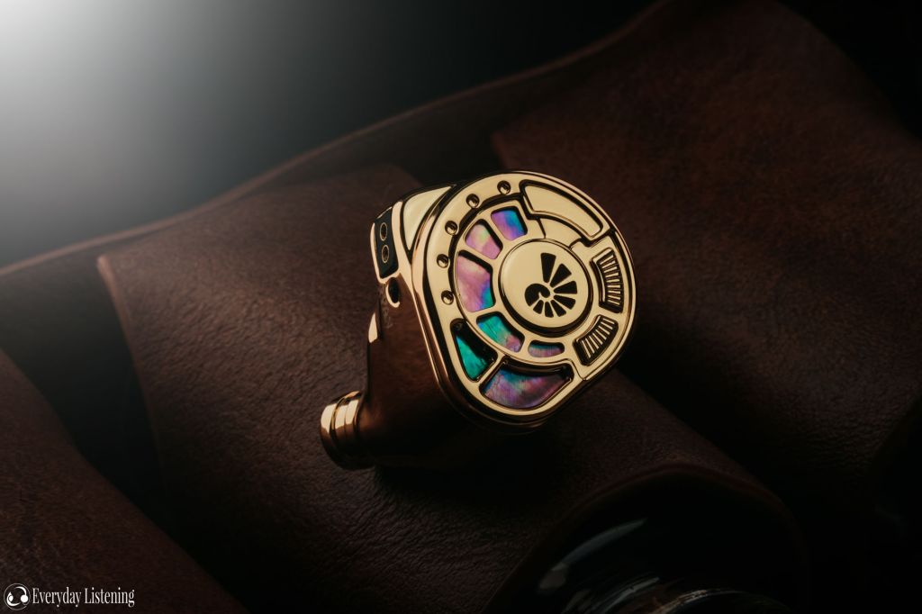 As intended by the designers, the Nautilus looks like something materialized from the pages of a fantasy novel. Joe has achieved a bold steampunk aesthetic blending high polish gold with ornate, iridescent mother of pearl. The faceplate underlays showcase dazzling colour, combining with the CNC-milled intricacies above to form a mesmerizing play on light. Despite this, the overall silhouette is quite streamlined, its triangular shape being reminiscent of the profile carried by most Fir and 64 Audio IEMs. Of course, with the premium BOM comes hugely satisfying heft and density in the hand. Just as impressive is the attention to detail as every join is minimal and perfectly uniform. The Nautilus is a true masterclass of IEM construction quality and inspired design.