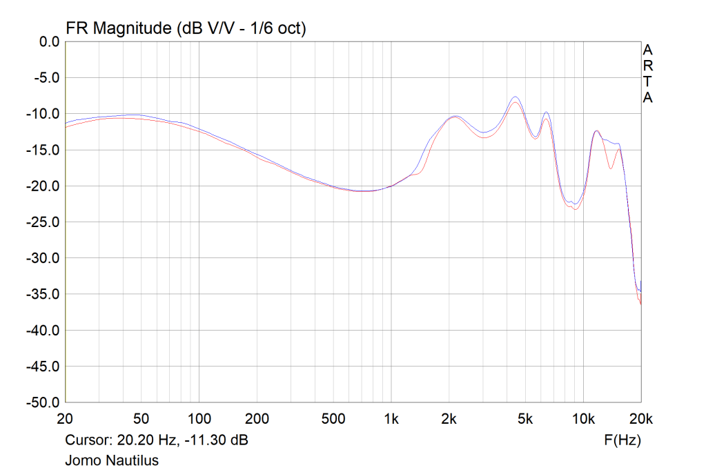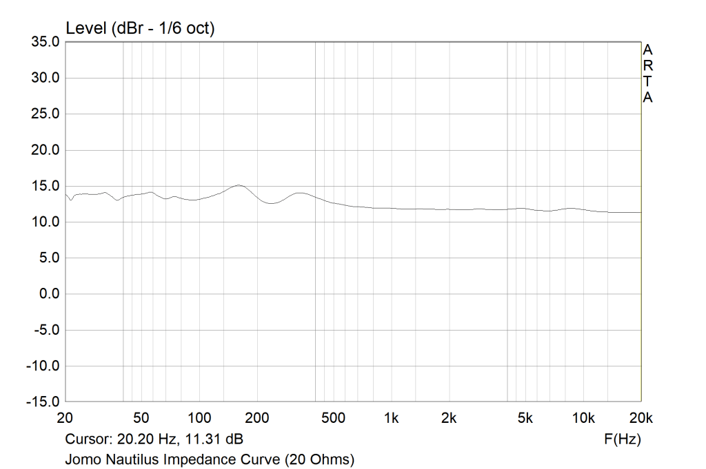 The Nautilus has a relatively flat impedance curve but still benefits from a sub-2-ohm impedance source. With an output impedance of 20 Ohms, I experienced a notable drop in treble presence creating more of an L-shaped tonality. Given that the earphone is so pleasantly balanced, a low-impedance source tends to work best.
