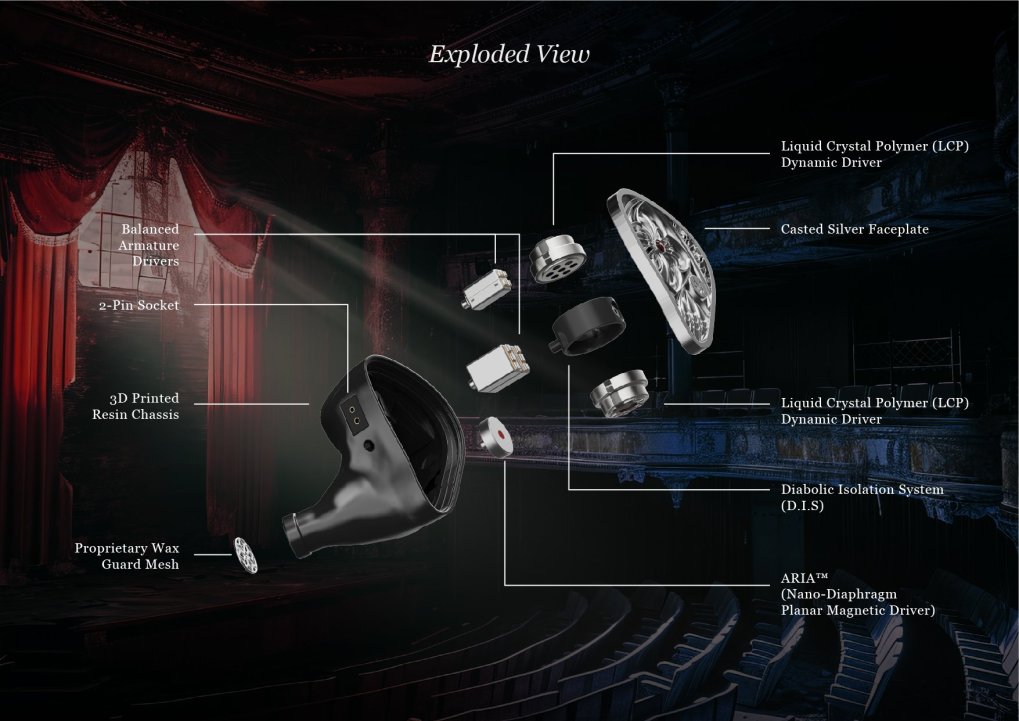 - Drivers: 4 BA, 2 7.8mm Custom LCP DD, 1x Aria Custom Nano PMD