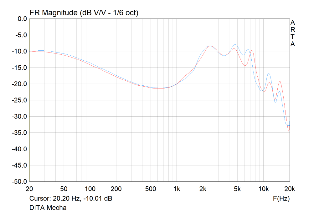 Mecha is well-balanced IEM with a slight L-shaped tonality. It isn’t a reference monitor but is defined by a natural, organic character throughout with minor and tasteful colouration. To my ears, DITA always tunes a good low-end, and Mecha is no different. Elevation is moderate and split nicely between sub and mid-bass. This contributes to natural bass notes that aren’t overly rounded or boomy. A small lower-mid dip aids separation before a rise to dual centre and upper midrange bumps that uphold strong vocal presence. Though the midrange has enhanced clarity, it has a smoother articulation and also picks up a tinge of warmth from the bass, contributing to a euphonic and well-metered presentation without intensity. Treble broadly sits behind. While it isn’t overshadowed, it also never steals the spotlight. It is defined by an excellent texture, timbre and a natural sense of air and headroom that isn’t exaggerated.